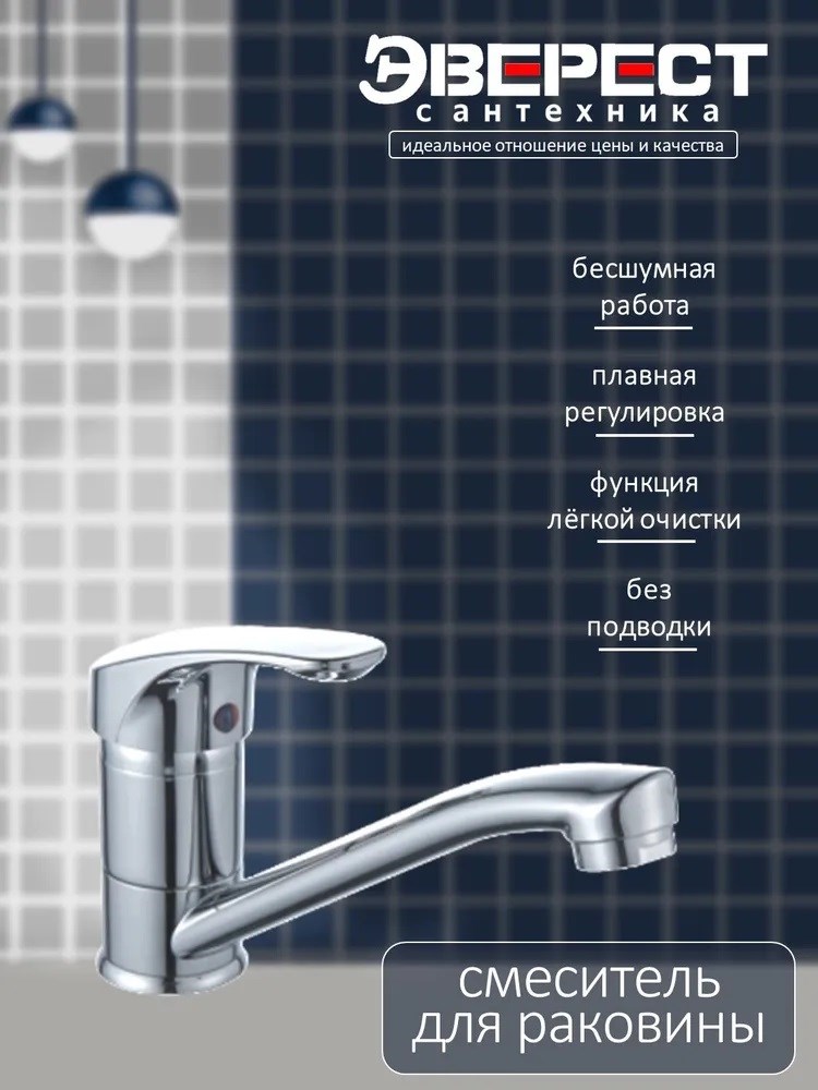 Смеситель для кухни ЭВЕРЕСТ B58-214М, однорычажный, на гайке, хром