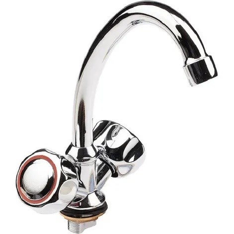 Двухвентильный смеситель для кухни изготовлен из цинкового сплава с хромированным покрытием. Он сочетает в себе современный дизайн и функциональность. Этот кухонный смеситель с поворотным изливом и аэратором обеспечивает удобство использования и экономию воды. Подводка не входит в комплект.