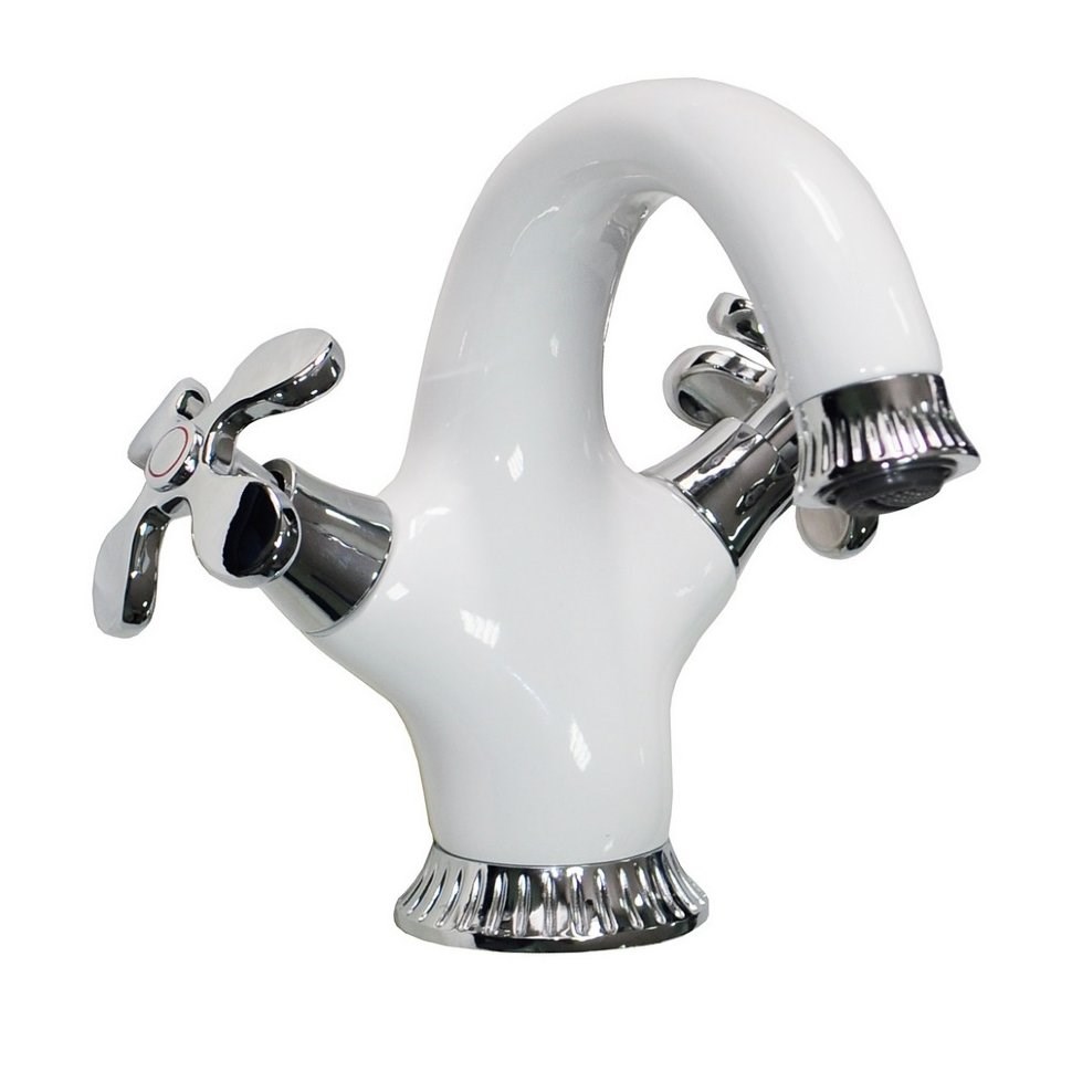 Смеситель для умывальника 5930 GFmark, двухвентильный, излив 155мм, белая эмаль