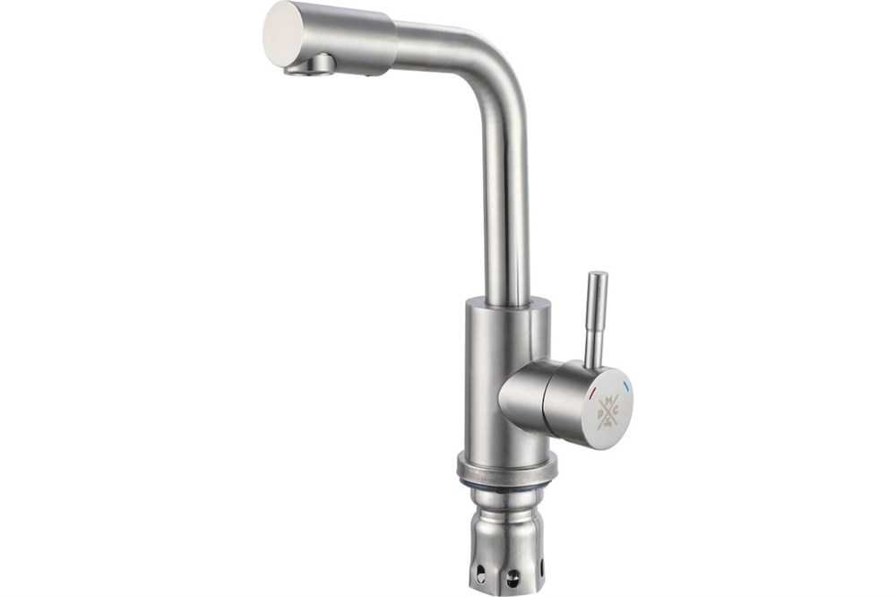 Смеситель с высоким изливом сделан из нержавеющей стали, что является гарантией качества и долговечности, устойчив к царапинам и перепадам температур, экологичен и безопасен для здоровья. Поверхность не потеряет со временем свой роскошный вид, а уход за ней сводится к протиранию мягкой салфеткой. Диаметр картриджа 35мм.