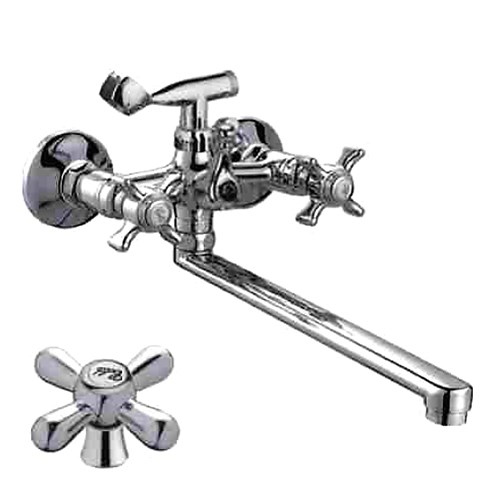 Смеситель для ванны имеет два рычага чтобы регулировать напор воды. Аэратор в приборе позволяет обеспечить равномерную подачу воды , а также ее смягчение. Модель обладает поворотным изливом. Прибор оснащен качественной керамической кран-буксой. У подобных приборов переключение подачи воды на излив или душевой шланг совершается при помощи поворота специального рычага, который вынесен на переднюю панель прибора. Установка прибора осуществляется на два отверстия,В комплект: инструкция по установке, гарантийный талон, душевая лейка , держатель лейки , комплект эксцентриков , комплект отражателей.