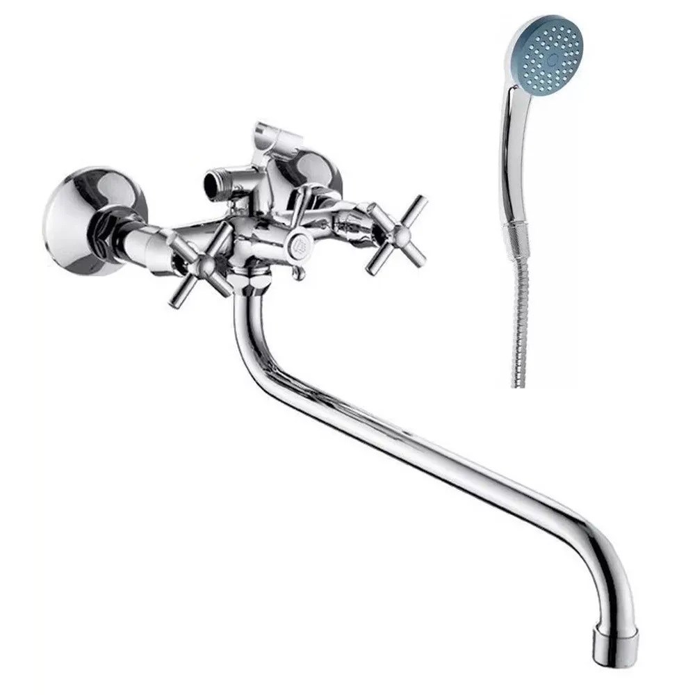 Смеситель для ванны с круглым, длинным изливом и переключателем для душа. Покрытие корпуса хром. Кран-букса латунная с керамическими пластинами. Смеситель для ванны и душа с длинным изливом - идет в комплексе с лейкой, шлангом и комплектом крепежа. Смеситель для ванны отлично справляется с регулированием температуры и напора потоков горячей и холодной воды. Керамическая кран-букса с шумопонижающим эффектом. Смеситель на ванну и умывальник с поворотным краном снабжен аэратором, который насыщает поток воды кислородом, экономит расход воды. Шланг гибкий для душа в комплекте, длиной 1,5 метра в металлической оплетке. Хромированное покрытие защищает от воздействий внешней среды, мыльного налета и механических повреждений. Лейка для душа однорежимная в комплекте.