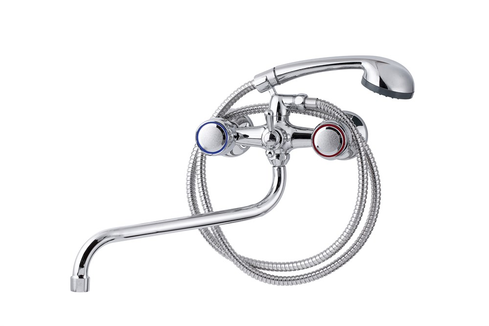 Смеситель для ванны с длинным поворотным изливом 30 см позволяет использовать кран на умывальнике и для набора ванны, оснащен аэратором. Управление смешиванием осуществляется двумя металлическими маховиками, водозапорные механизмы - латунные кран-буксы с керамическими пластинами. Управление потоками осуществляется шаровым дивертором в корпусе смесителя. Шаровой механизм дивертора это наиболее простая, надежная, ремонтопригодная конструкция.