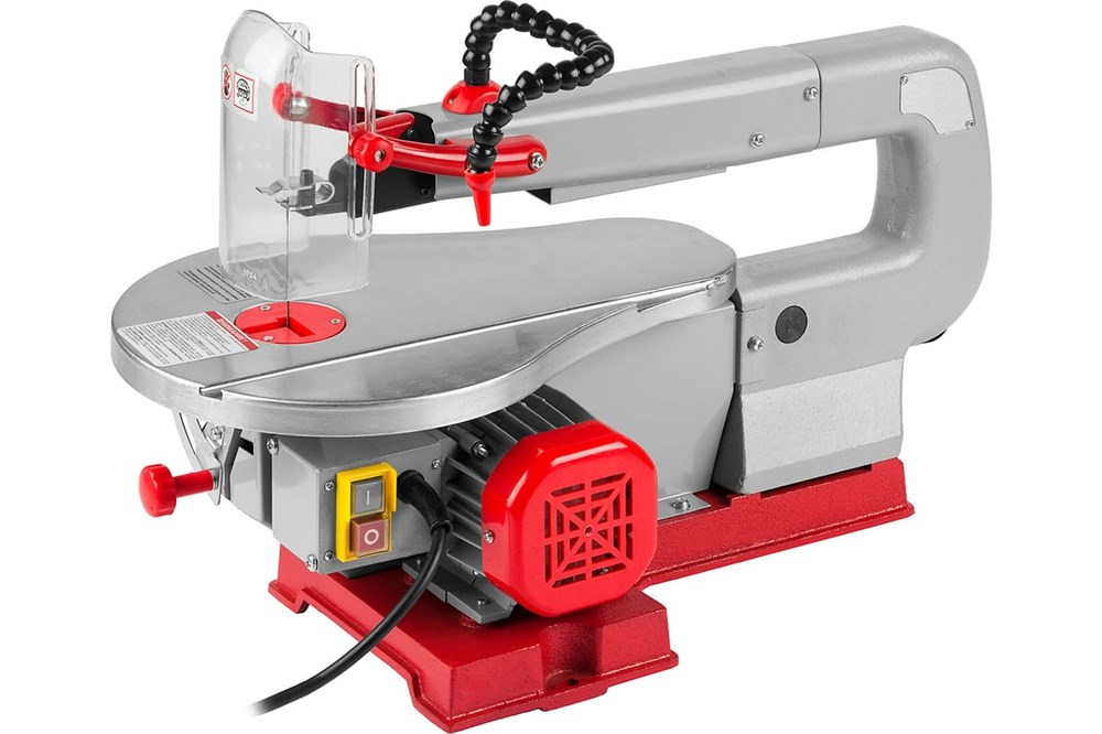 Лобзиковый станок используется на небольших производствах для распилки деревянных или пластмассовых изделий. Рабочий стол имеет возможность наклоняться на угол от 0 до 45 градусов, что позволяет выполнять пилы под углом. Для точности выполнения работ в комплект станка входит боковой упор с транспортиром. Преимущества: