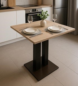 Стол обеденный компактного размера для размещения на небольшой кухне.