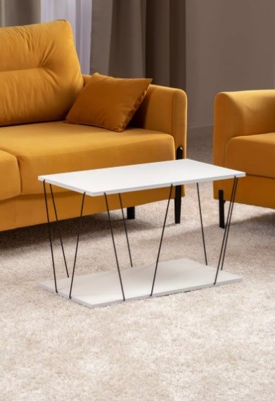 Столик журнальный Рейв 688х404х475мм с металлическими прутками, белый