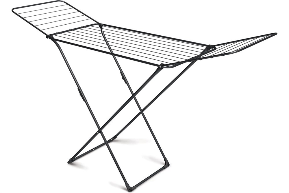 Складная напольная сушилка для белья с распашными створками для использования в любых помещениях и на открытом воздухе. Прочный металлический каркас и струны с антикоррозийным покрытием устойчивы к влаге. Пластиковые наконечники на опорах предотвращают скольжение и обеспечивают защиту от повреждений.