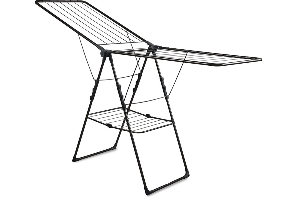 Складная напольная сушилка для белья с полкой. Компактная в сложенном виде и вместительная в развернутом. Подходит для использования в небольших помещениях. Прочный металлический каркас и струны с антикоррозийным покрытием устойчивы к влаге. Распашные сворки с поперечным и продольным расположением сушильных прутьев. Дополнительная полка для сушки белья. Пластиковые наконечники на опорах предотвращают скольжение и обеспечивают защиту от повреждений. Максимальная нагрузка на сушилку составляет 15 кг.