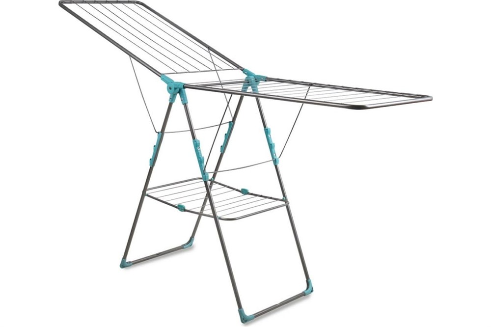 Складная напольная сушилка для белья с полкой. Компактная в сложенном виде и вместительная в развернутом. Подходит для использования в небольших помещениях. Прочный металлический каркас и струны с антикоррозийным покрытием устойчивы к влаге. Распашные сворки с поперечным и продольным расположением сушильных прутьев. Дополнительная полка для сушки белья. Пластиковые наконечники на опорах предотвращают скольжение и обеспечивают защиту от повреждений. Максимальная нагрузка на сушилку составляет 15 кг.