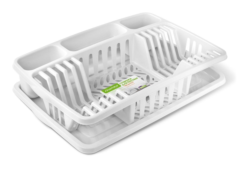 Практичная и вместительная сушилка обеспечивает пространство для сушки посуды. Имеет отделения для тарелок, чашек, стаканов и столовых приборов. Остатки воды стекают на поддон, который защищает кухонную мебель от излишней влаги.