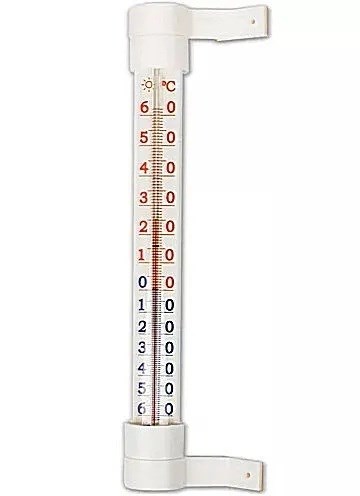 Термометр оконный изготовлен специально для измерения температуры воздуха за окном. Шкала с термометрической жидкостью показывает значение от -60 до +60 °C. Фиксация на гвоздики.