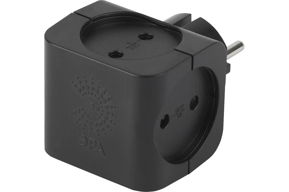 Разветвитель/тройник ЭРА SP-4-В Б0008207, четырехместный, без заземления, куб, черный