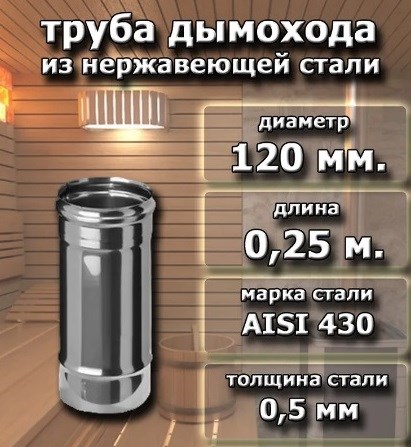 Труба дымохода диаметр 120мм, длина 0.25м, нержавеющая сталь (AISI 430/0.5мм)