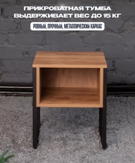 Аккуратная тумба Лофт с вместительной полкой подойдет для тех, кто предпочитает хранить около кровати самое необходимое — гаджеты, лекарства, книги, косметику. Можно сделать прикроватную тумбу заметной деталью интерьера, дополнив её необычным ночником, фотографиями или цветами. На полке можно хранить детское вещи или предметы личной гигиены, которые понадобятся перед сном или после пробуждения. Благодаря этой практичной тумбе легко дотянуться до необходимой вещи, не вставая с кровати. Компактной тумбой можно заменить кофейный или приставной столик, если нужно перекусить или поработать за ноутбуком. Современная мебель для спальни в индустриальном стиле идеально впишется в интерьеры в стилях лофт и минимализм. Полки из ЛДСП визуально имитируют поверхность натуральной древесины. Пластиковые заглушки-протекторы на металлических ножках защищают пол от царапин и вмятин.