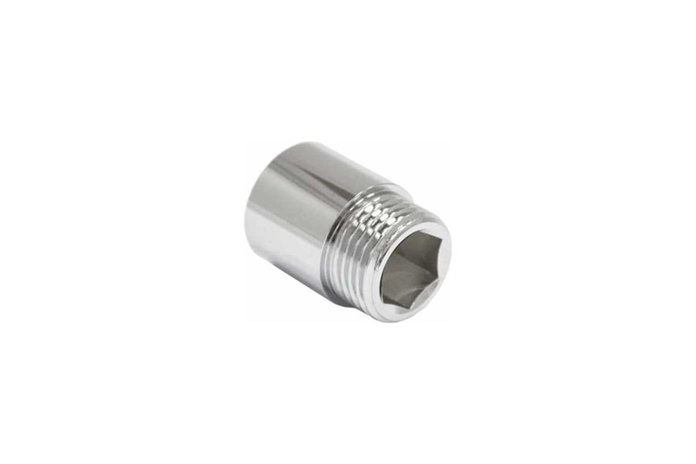 Удлинитель - это соединительный элемент трубопроводов из никелированной (хромированной) латуни, представляющий из себя цилиндр с короткой резьбой, нарезанной с одной стороны на внешней его части, а с другой стороны на внутренней его части. На внутренней стороне цилиндра имеется шестигранная гайка под ключ для удобства монтажа. Для создания более надежного соединения, рекомендуется использовать уплотнительный материал.