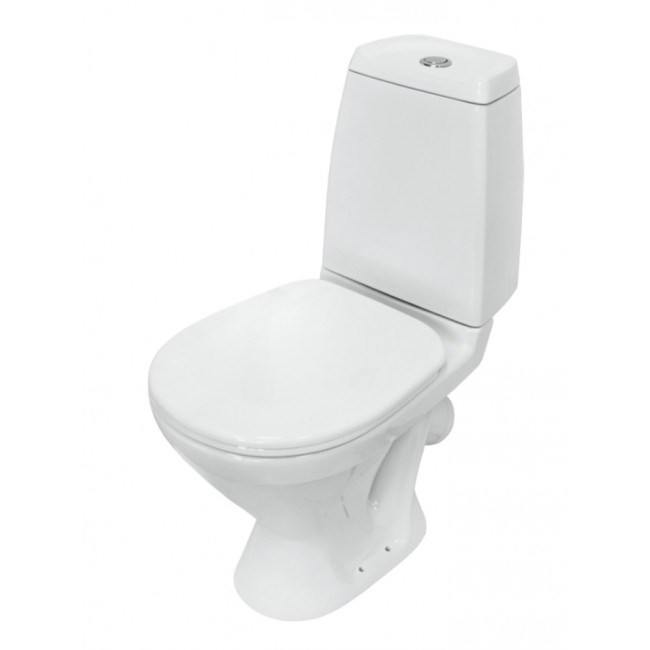 Унитаз-компакт SANITA Кама Стандарт, косой выпуск, двухрежимная арматура, нижняя подводка, крышка полипропилен, белый