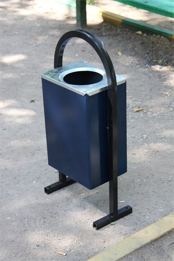 В опоре урны, предусмотрены отверстия для крепления анкерными болтами к поверхности). Ёмкость урны опрокидывающаяся, в комплекте декоративная крышка, которая может служить поверхностью для тушения окурков.