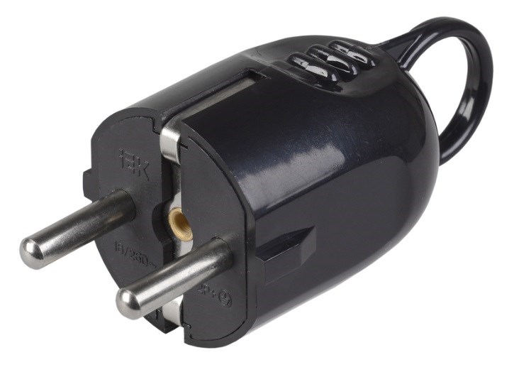 Вилка угловая IEK EVP-12-16-01-К02, 16А, 250В, IP20, с заземлением, с ушком, АБС-пластик, черная