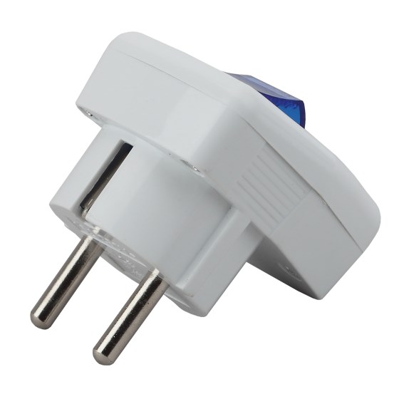 Вилка угловая ЭРА Vx5-W, 16А, 220-230В, IP20, с заземлением, с выключателем, пластиковая, белая