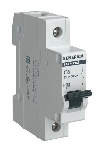 Выключатель автоматический GENERICA ВА 47-29, однополюсной 1Р, 6А, 4.5кА, тип С