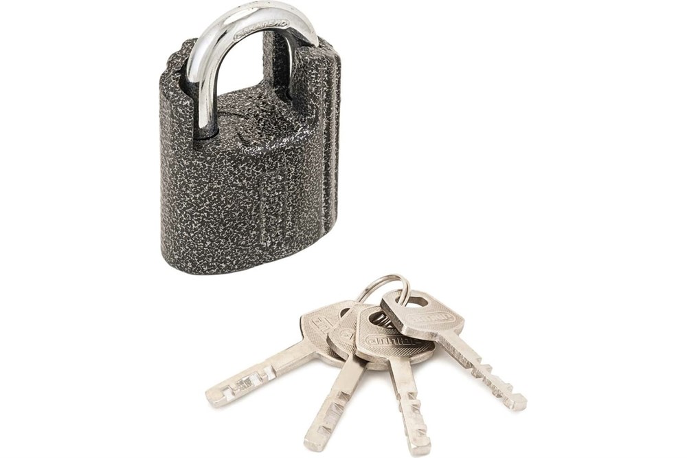 Замок навесной с закрытой дужкой. Применение: общее. Автоматическое закрывание - нет. Материал корпуса - чугун, покрытие - полимерная краска, дужки - закаленная сталь. Ширина основания корпуса - 62мм, диаметр дужки 10мм. Дисковый механизм секрета, защита от высверливания механизма, 4 ключа.