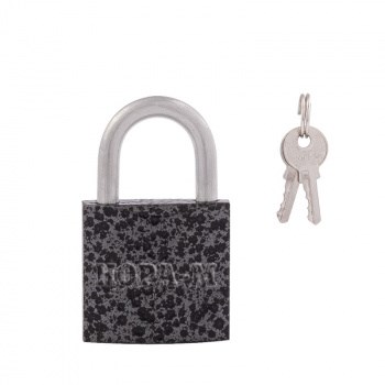 Замок навесной предназначен для запирания дверей хозяйственных и промышленных помещений, гаражей, складов и т.д., оснащённых дверными проушинами. Навесной замок с автоматическим запиранием, открывается ключом. Материал изготовления чугун, материал дужки - закалённая сталь. В комплекте 2 стальных ключа.