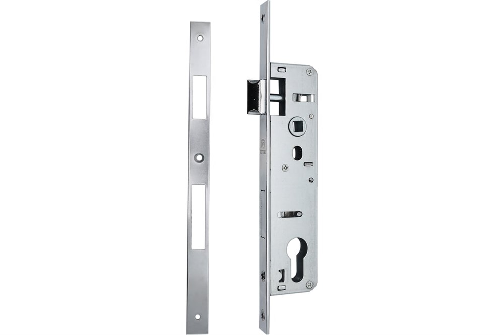 Врезной узкопрофильный замок под цилиндр для входных металлических / деревянных дверей, для межкомнатных дверей. Данная модель замка для внешних и внутренних дверей отлично дополнит интерьер современной квартиры или офисного помещения. Предназначен для установки с цилиндровым механизмом и ручкой на планке.