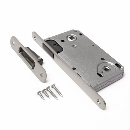 Полноразмерная защёлка для деревянных межкомнатных дверей с бесшумным пластиковым язычком. Корпус универсальный: подходит и на правые, и на левые двери, защелка легко переставляется без использования дополнительного инструмента. Межосевое расстояние 96 мм. Ответная планка с дополнительным элементом загиба убережёт наличники при соприкосновении с языком защелки закрывающейся двери от порчи и сохранит эстетичный внешний вид. Отверстие под квадрат ручки: 8х8 мм.