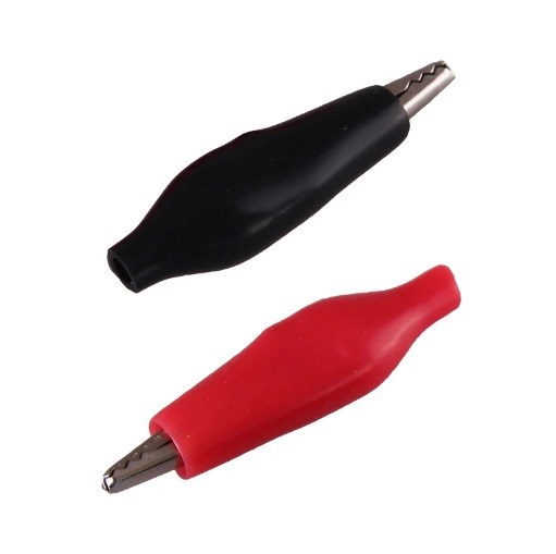 Контактная часть изделия изготавливается из стали с никелированным покрытием и полностью закрыта изолятором. В целях безопасной эксплуатации зажима, изоляция, изготовленная из ПВХ, исключит случайное контактирование с другими токонесущими частями и предохранит от поражения электрическим током. Чаще всего зажимы применяются парами черного и красного цвета (50/50).